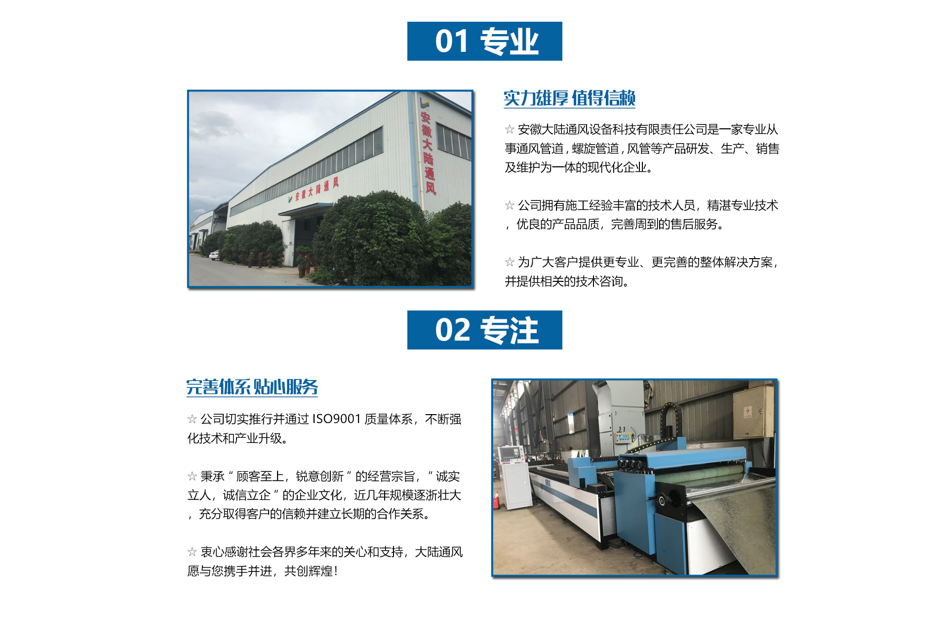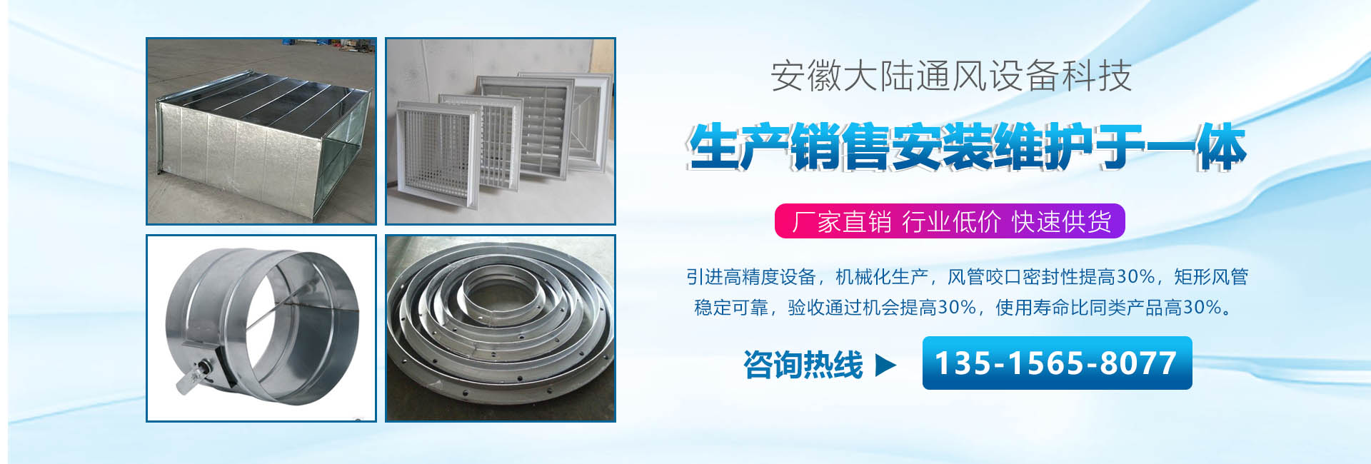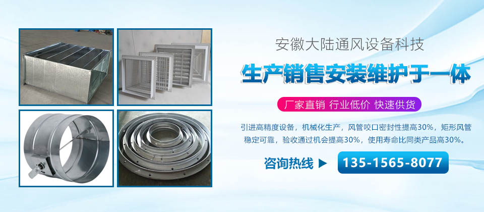 安徽大陸通風設備科技有限責任公司加工共板法蘭風管、螺旋風管、角鐵法蘭風管、插接式風管。價格合理。質量保障。是國內生產和研究通風管道的企業(yè),工廠坐落于經濟發(fā)達的安徽省合肥市。公司配備了好的自動化流水線設備和先進的制作安裝技術。